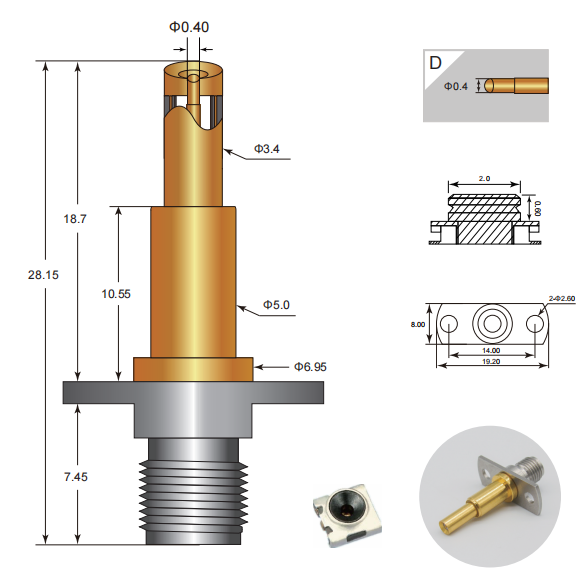 The D040 Precision RF Interconnect System is a compact RF connector solution built around a stable coaxial signal structure. Its internal design emphasizes controlled impedance behavior, reduced signal discontinuity, and reliable contact alignment.