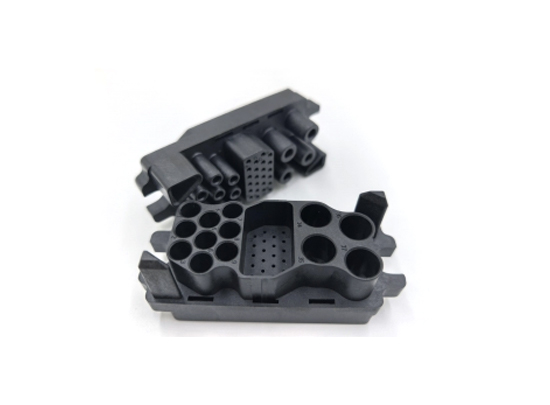The connector body incorporates multiple isolated cavities, each capable of housing independent contact terminals. This design supports structured circuit grouping within a single interface.