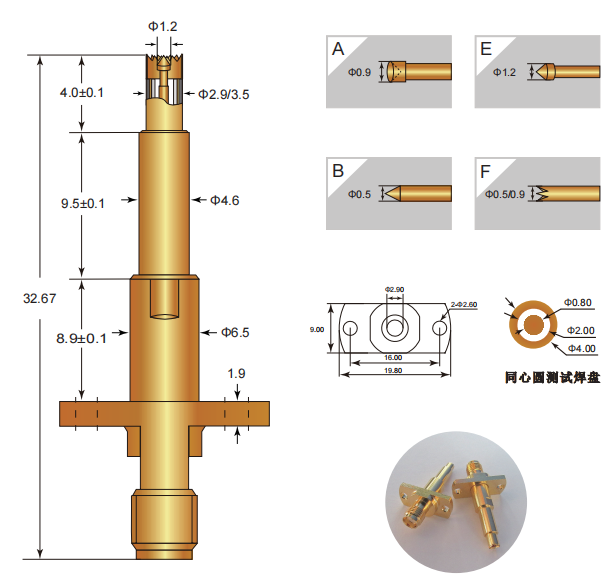 signal plunger:be cu gold plated